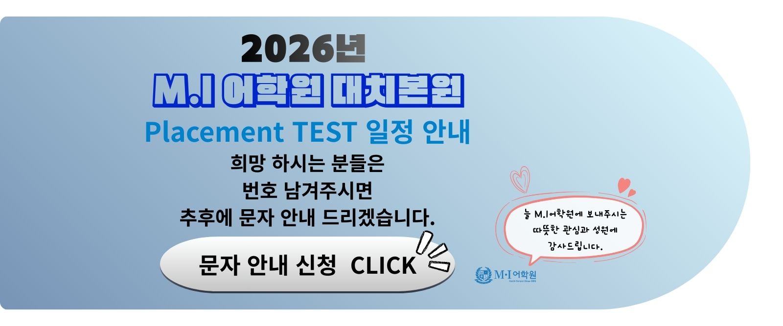 M.I 어학원에서 발급받은 아이디와 비밀번호로 로그인해 주시기바랍니다.
